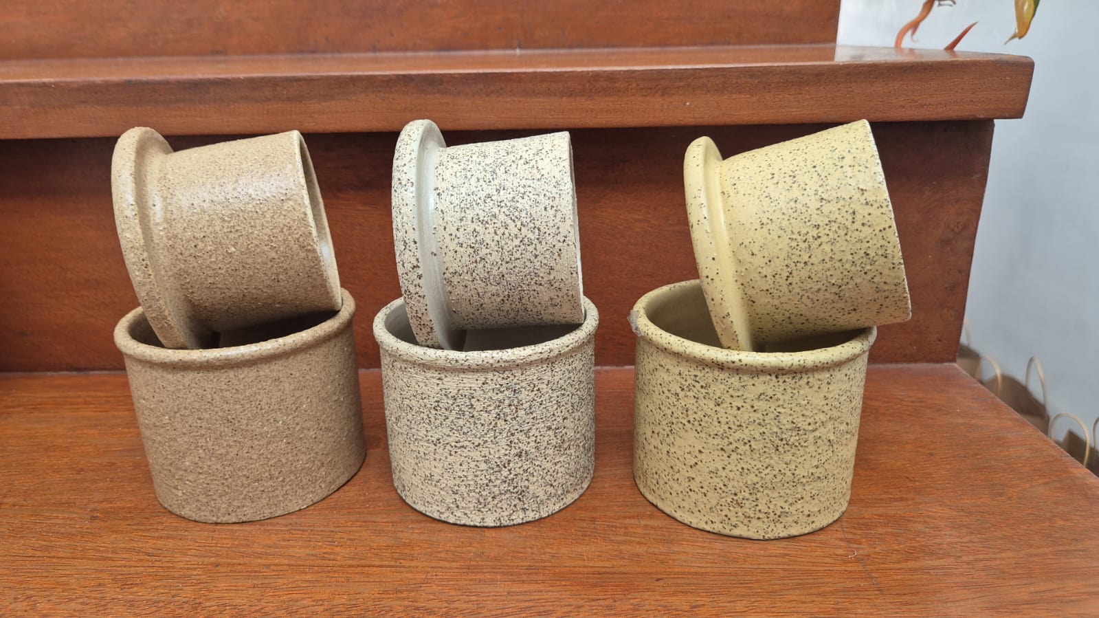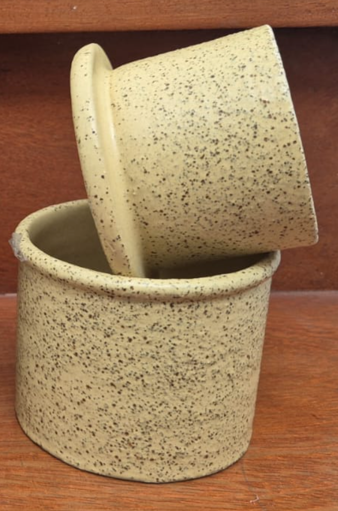 Mantequillera francesa de cerámica hecha a mano en torno.